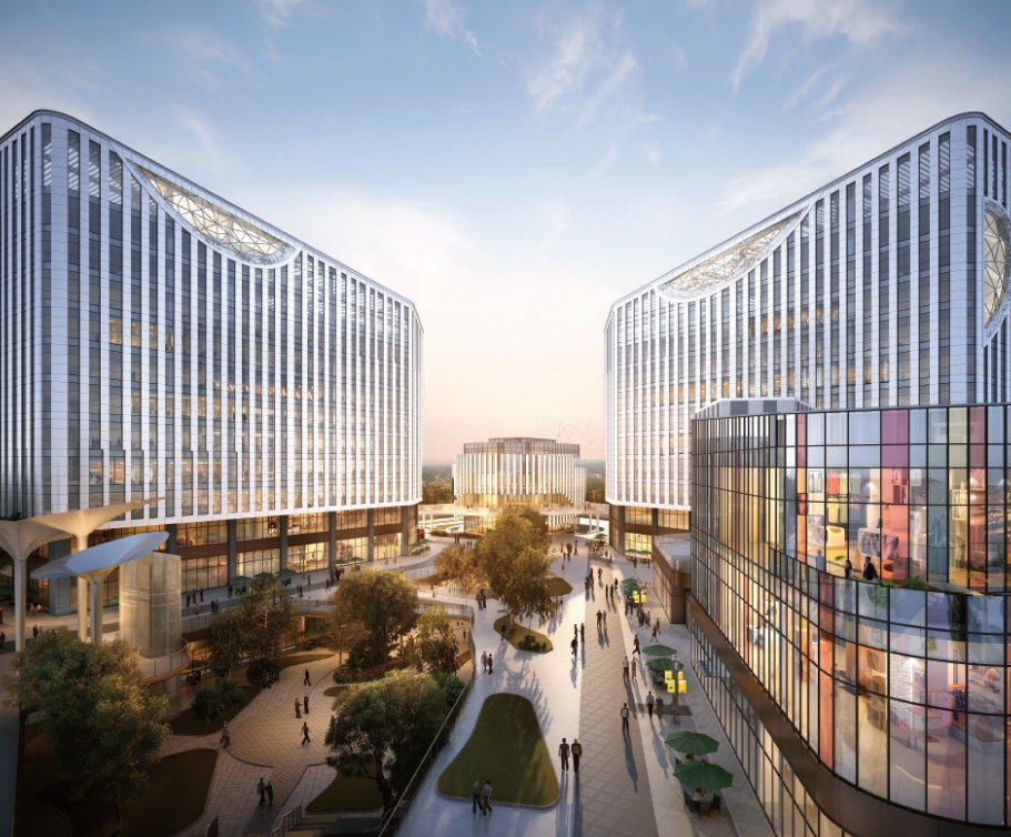 项目位于北京大兴国际机场临空经济区东区核心区位,由7栋主体建筑构成,包括4栋商务办公楼、1栋商业服务综合体、1栋高端酒店服务楼及临空区招商展示中心,总建筑面积约20万平方米,集商务办公、国际酒店服务、多元商业、展览展示交流等功能于一体。